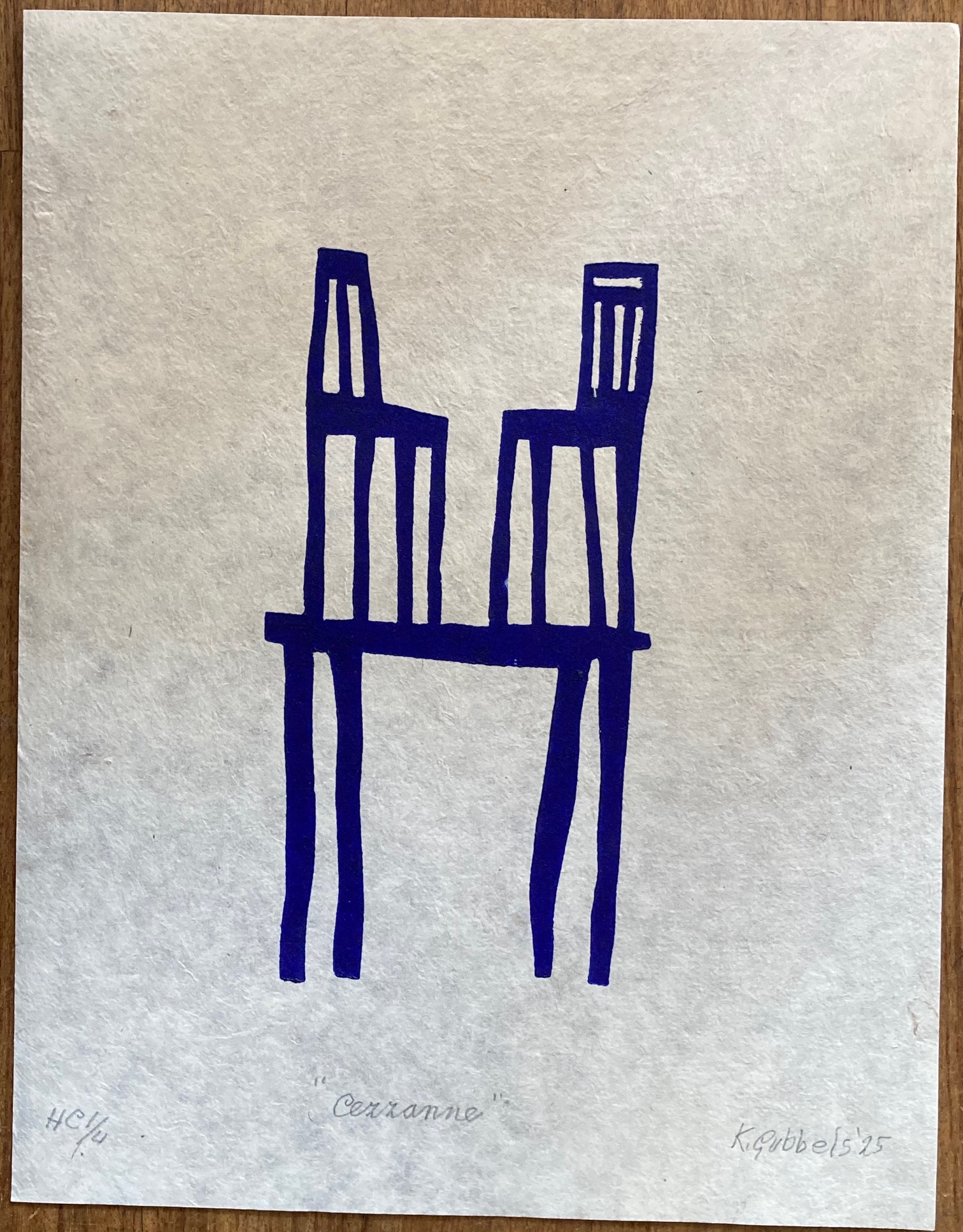 Houtdruk getiteld ‘Cezanne’ of ‘Cezzanne’, 2025 van Klaas Gubbels.