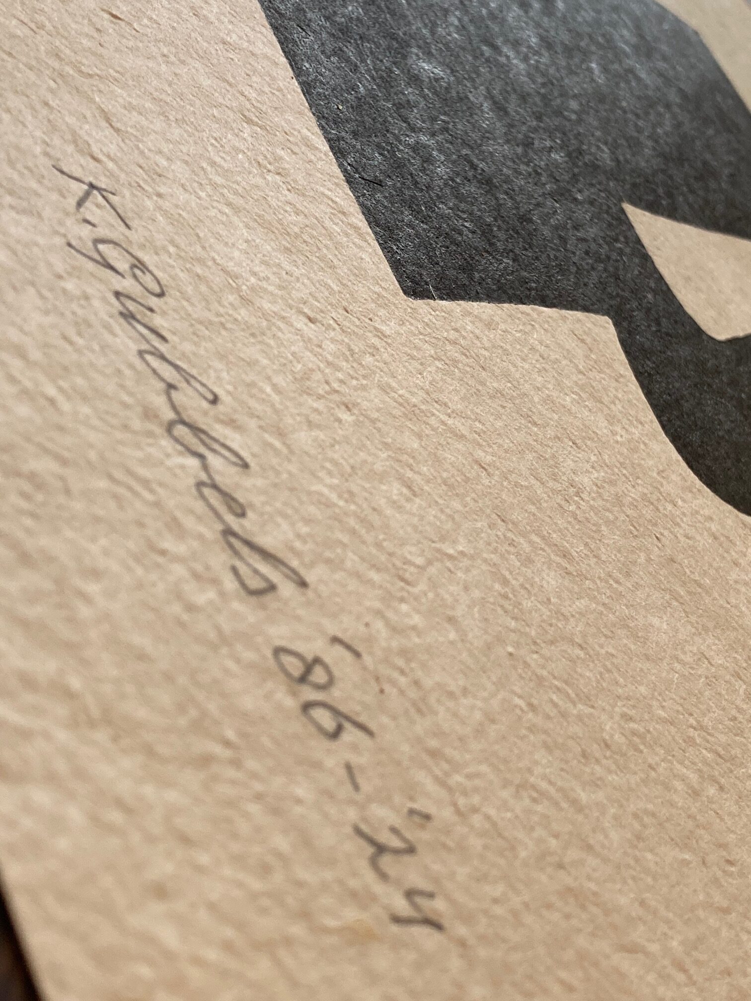 De jubileumhoutdruk is gesigneerd door Klaas Gubbels ’24 en genummerd. Oplage: 20
