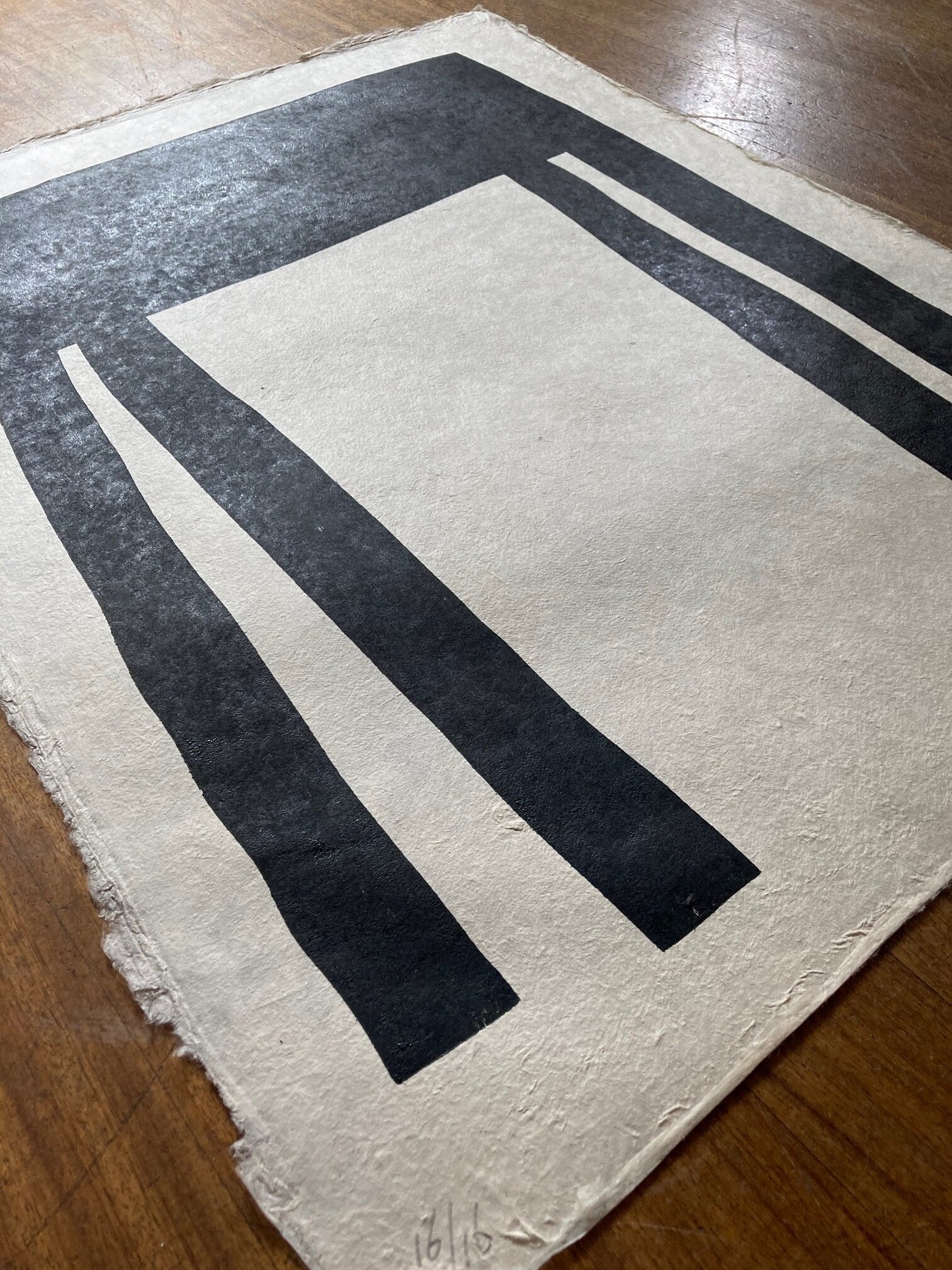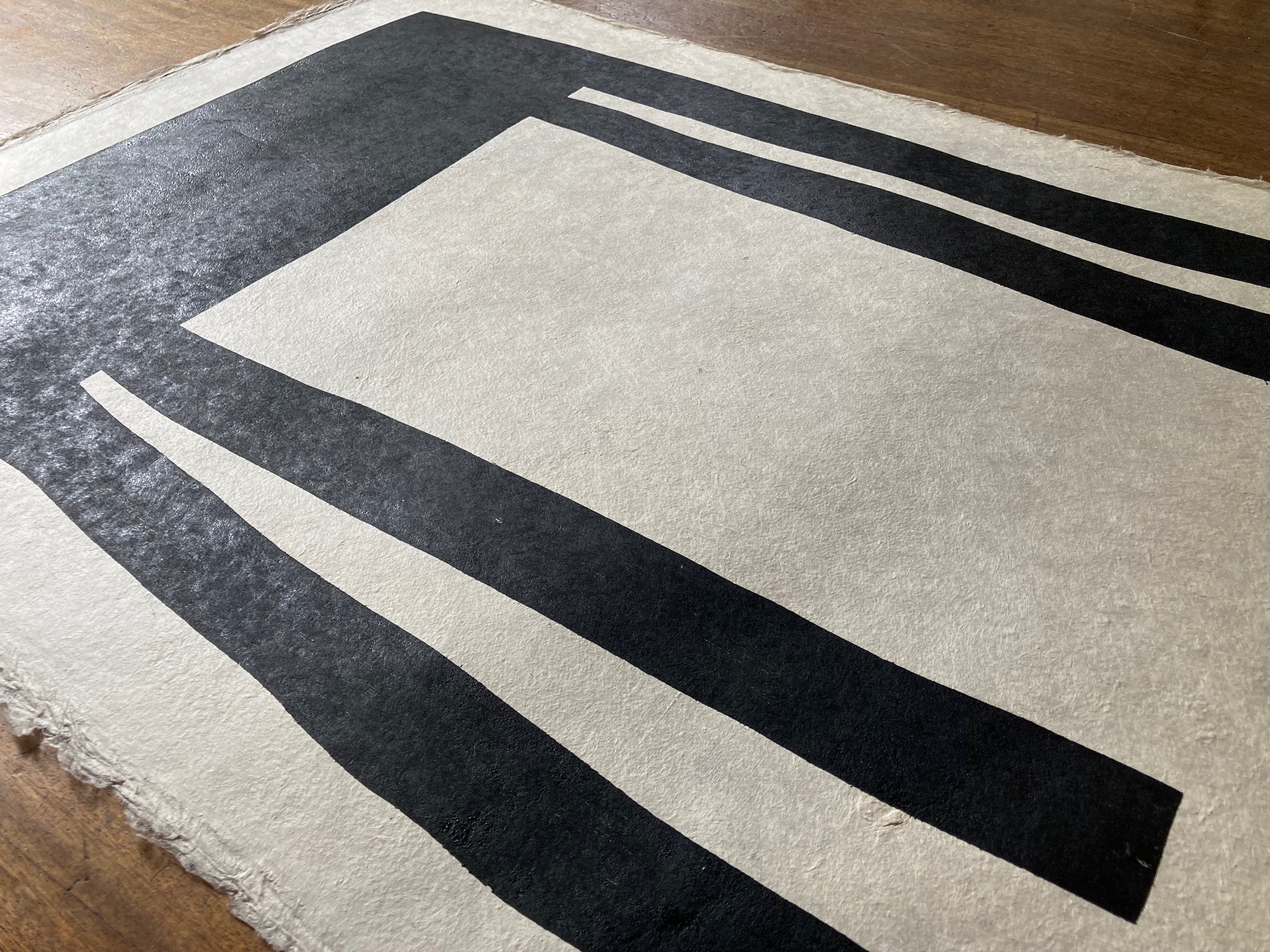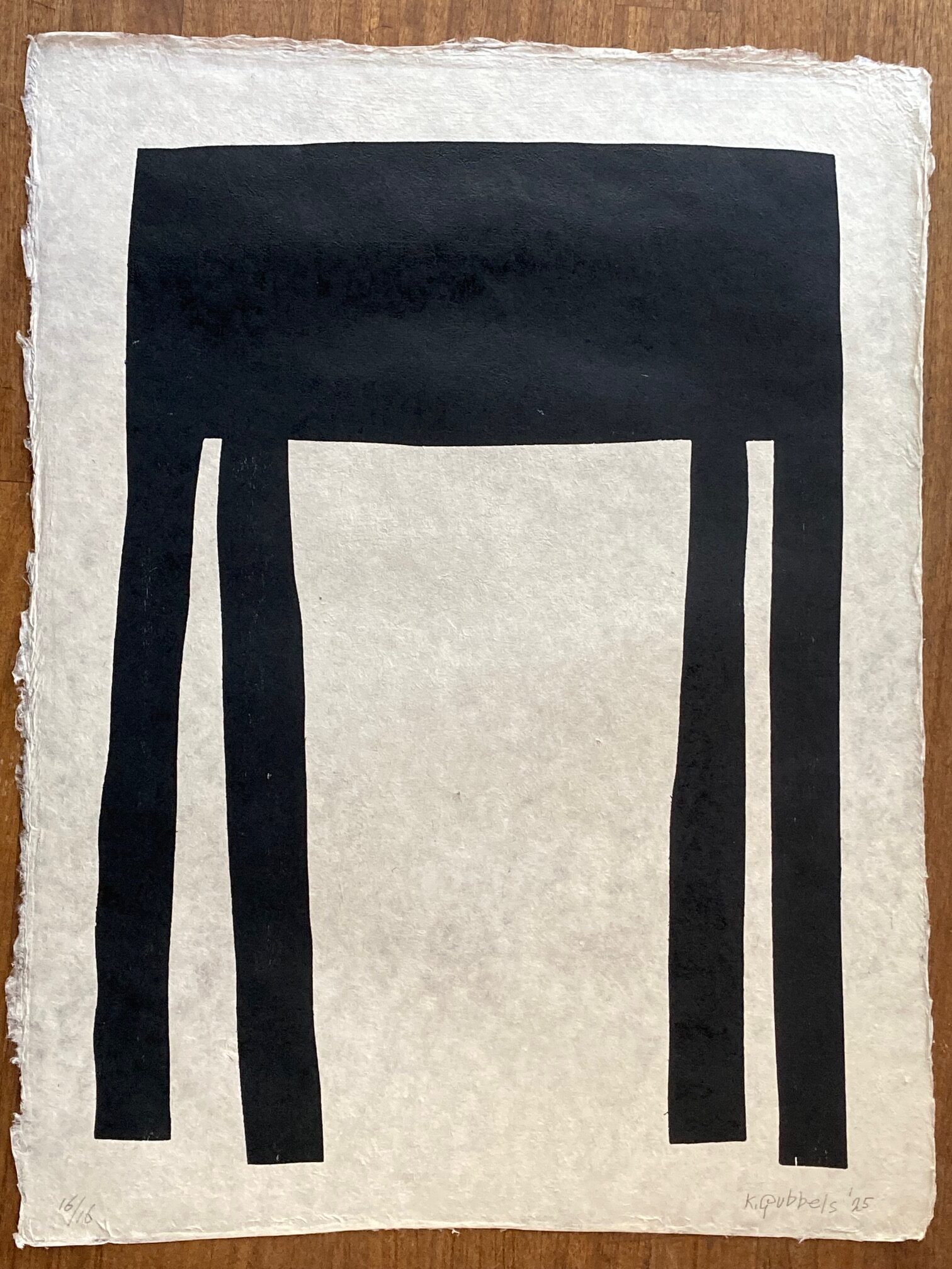 Houtdruk, grote zwarte tafel, 2025, Klaas Gubbels.