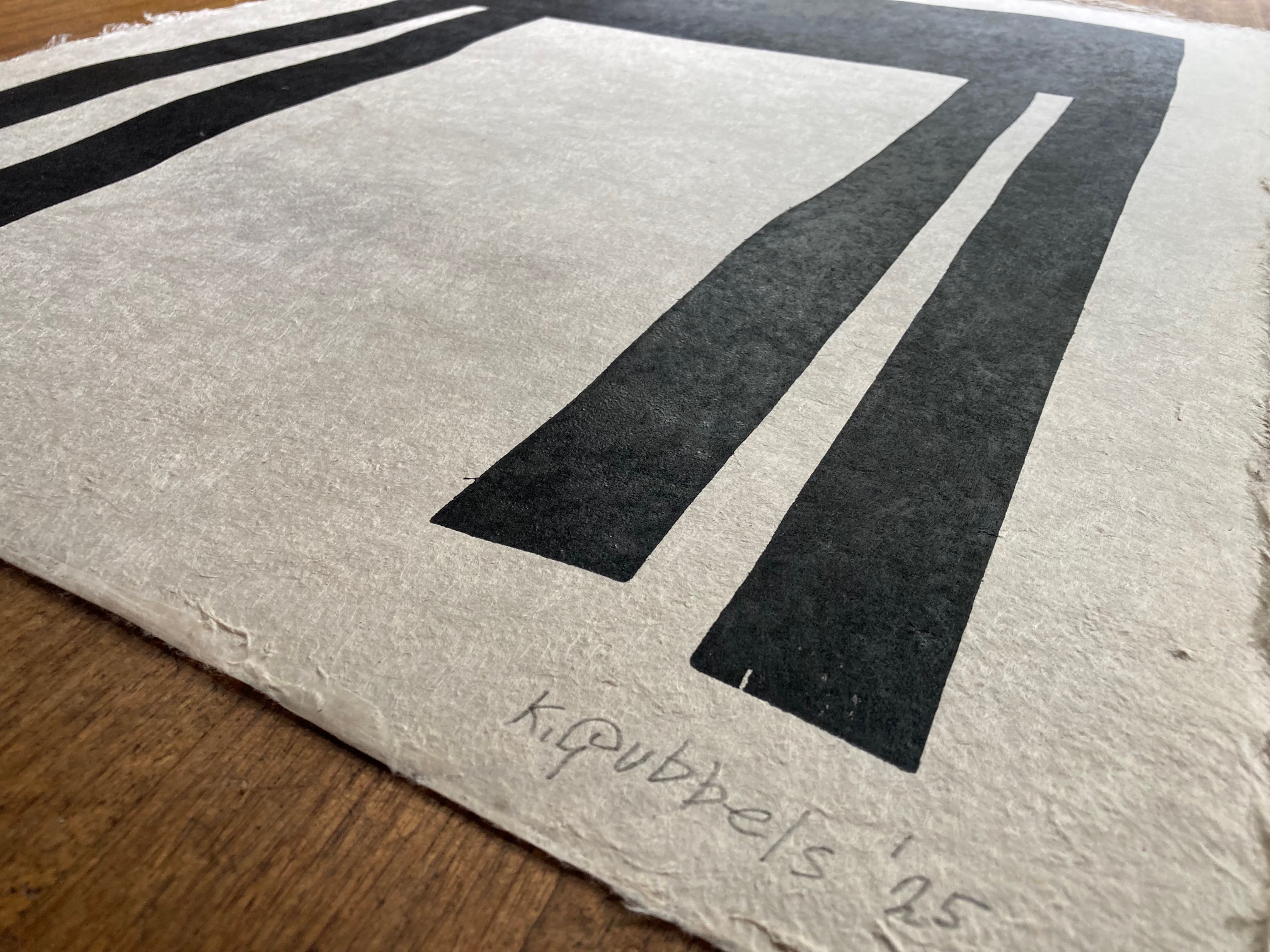 De houtdruk is gesigneerd door Klaas Gubbels ’25 en genummerd.
